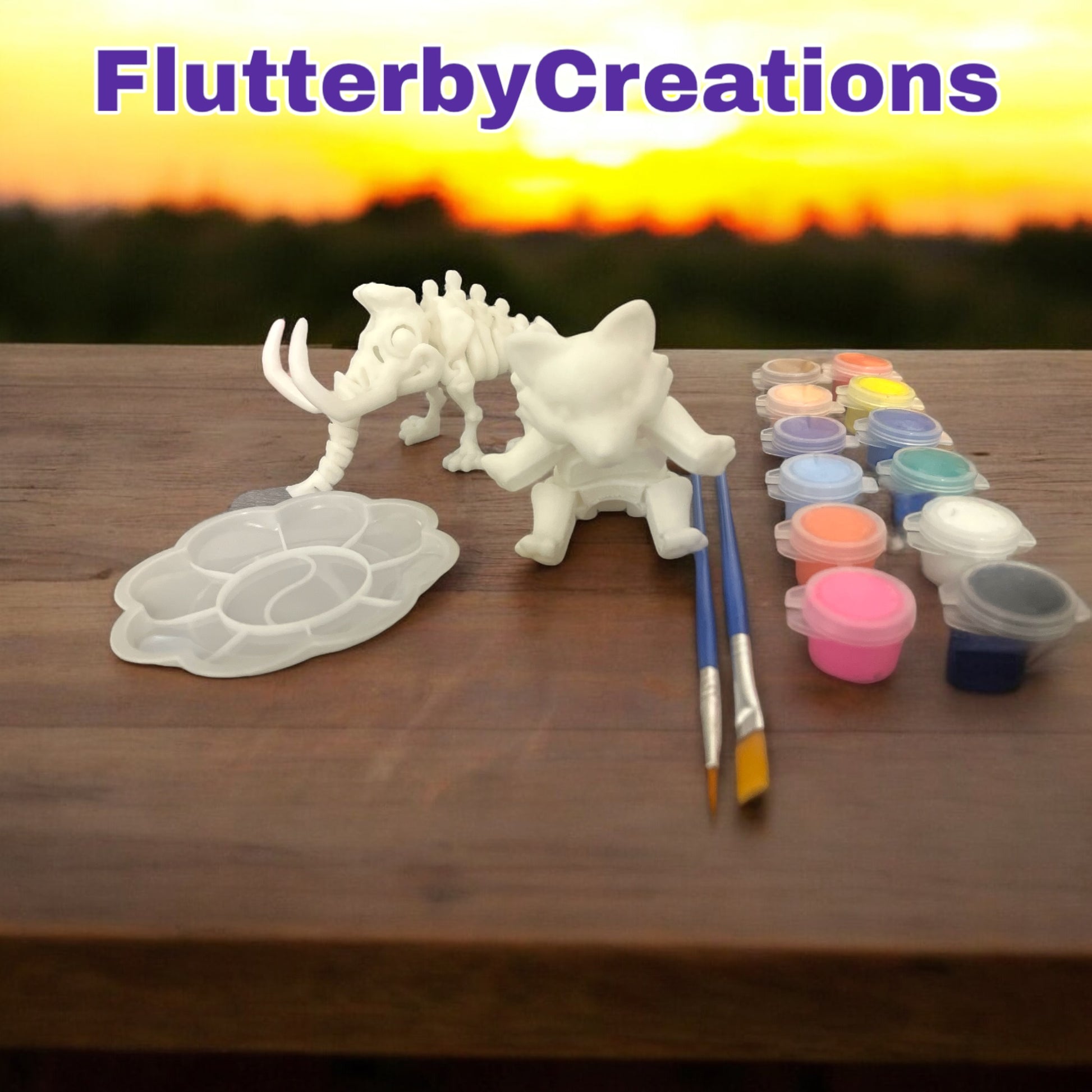 Get creative and let your inner artist shine with our DIY paint set! Perfect for all ages, this set includes a white 3D print, 2 paint brushes, a mixing pallet, and 12 washable acrylic paints. It's the perfect way to unleash your creativity and have fun painting.
