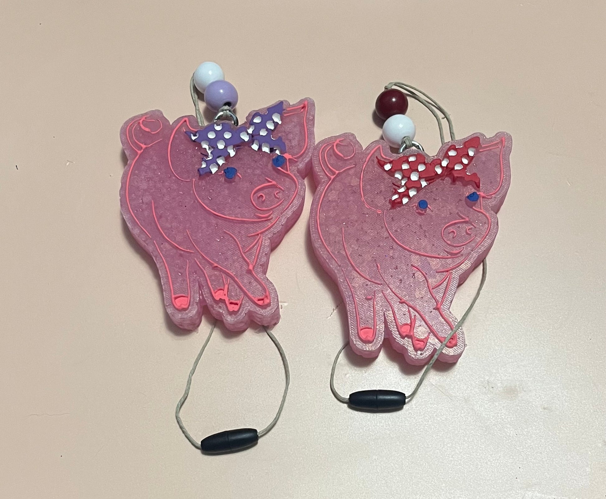 Display your swine style with this adorbs car freshie pig complete with bandana bow! Hang it on your rear-view mirror for a touch of farmyard fun. So snout-standing!